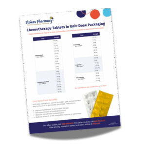 Print our chemotherapy detail sheet to see the available strengths and medications of our unit-dose chemotherapy tablets.